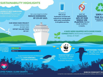 Lodné spoločnosti CLIA sa v decembri 2018 zaviazali v rámci celej flotily znížiť do roku 2030 mieru emisií uhlíka o 40 % v porovnaní s úrovňami v roku 2008. Priemysel výletných lodí na celom svete usilovne pracuje na dosiahnutí tohto agresívneho cieľa.