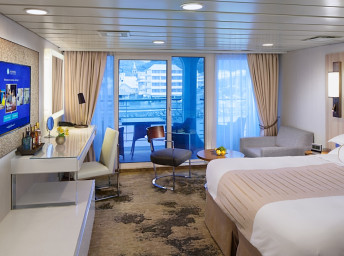 Kajuty: Club Interior, Club Oceanview a Club Veranda. V každej kajute sa nachádza: dve lôžka prestaviteľné na manželskú posteľ typu Queen, TV s plochou obrazovkou, minibar, klimatizáciu s termostatom, telefón s priamou voľbou a hlasovou poštou, písací stôl, trezor, sušič na vlasy, USB porty, froté župany a papuče, košík ovocia v deň nalodenia na privítanie, čerstvé kvety, pohodlnú tašku, zapožičanie dáždnika a ďalekohľadu, čistenie obuvi a denný spravodajský bulletin. Niektoré vonkajšie Oceanview kajuty majú i gauč. Veranda kajuty majú aj obývaciu časť a balkón.
