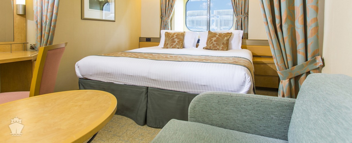 Vybavenie vo všetkých kajutách: individuálne nastaviteľná klimatizácia, oddelené postele (dajú sa spojiť do manželskej), Tv, rádio, telefón, sušič na vlasy, trezor, minibar, varná kanvica na prípravu kávy a čaju.