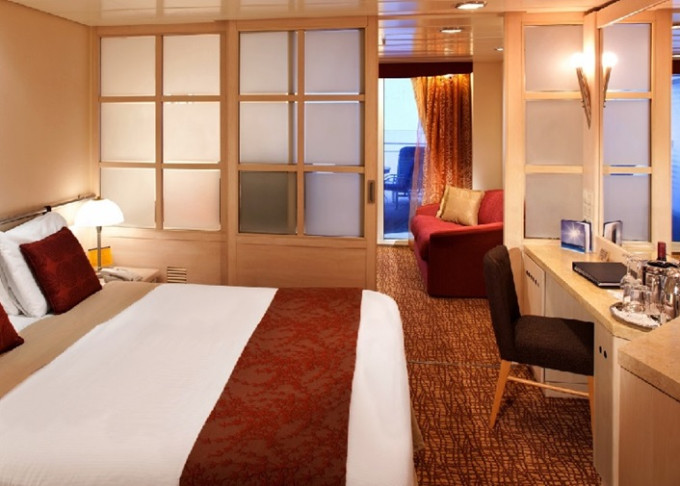 • Kajuty sú umiestnené v blízkosti lodného Spa. K ich vybaveniu patrí posilnený systém vzdušnej filtrácie, posteľ Queen-Size (v kategóriách Edge King-Size), veľké zasúvacie sklenené dvere, exkluzívne posteľné prádlo eXhale®, veľkorysé skladovacie priestory.
