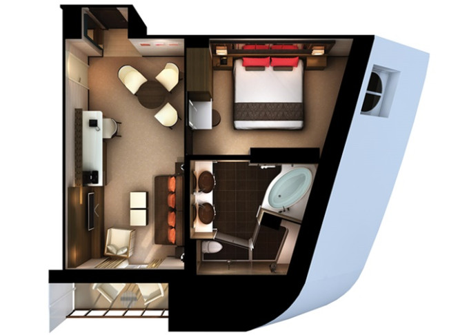 | MA - Club Suite s balkónom 21-28 m² / balkón od 2 m². 11. až 14. paluba - vpredu, stred. Max 2-4 osoby. Výhody Club. | 2 938 € 1 469 € za osobu | ||