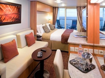 - Kajuty sú umiestnené v blízkosti lodného Spa. K ich vybaveniu patrí posilnený systém vzdušnej filtrácie, posteľ Queen-Size (v kategóriách Edge King-Size), veľké zasúvacie sklenené dvere, exkluzívne posteľné prádlo eXhale®, veľkorysé skladovacie priestory.