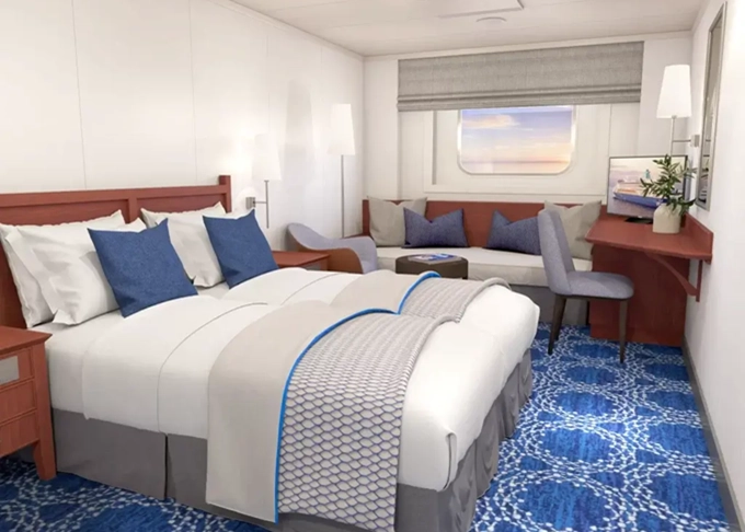 | XBO - Kajuta s oknom Cosmos / obmedzený výhľad 14 m². Neotvárateľné okno s obmedzeným výhľadom. 6,7. paluba. Max 4 osoby. | 958 € 479 € za osobu |