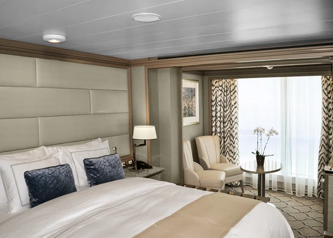 | VI - Vista Suite s oknom 32 m². Panoramatické neotvárateľné okno. 4. paluba. Max 2 osoby. | 14 800 € 7 400 € za osobu |