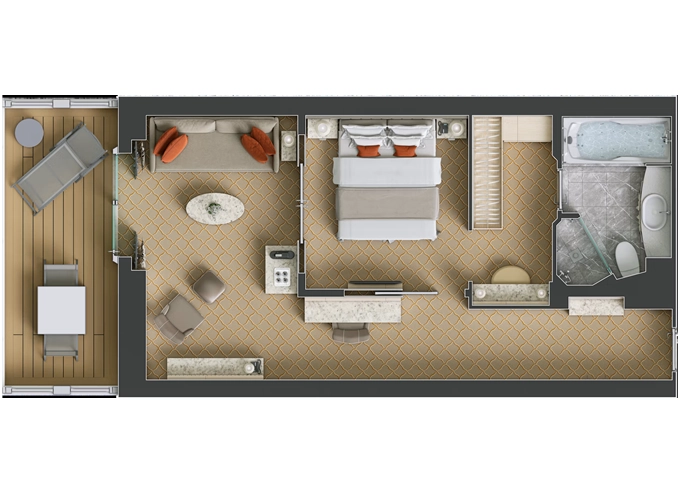 | SV - Superior Veranda Suite 30 m² + balkón 6 m². 7,8,9. paluba. Max 3 osoby. | 15 225 € 15 225 € za osobu |