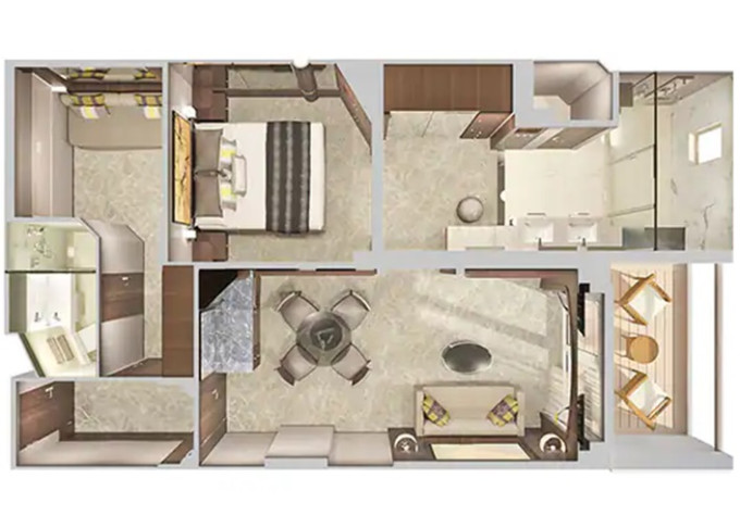 | H6 - The Haven Family Villa - 2 spálne 53 m² / balkón 8 m². Výhody The Haven. 14. paluba - stred. Max 6 osôb. | 11 474 € 5 737 € za osobu |