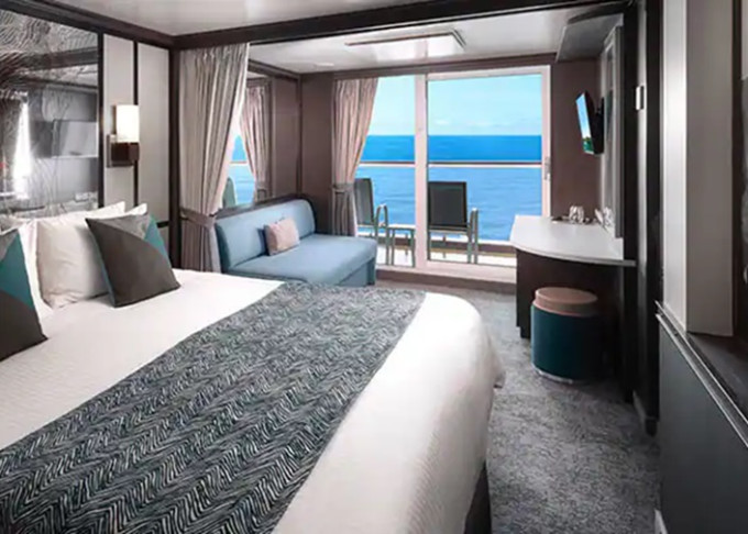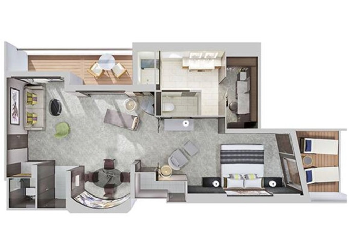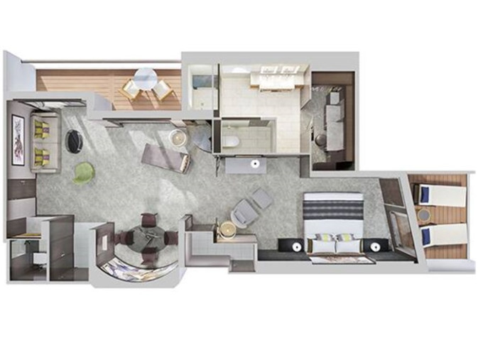 | M1 - Club Suite Aft-facing 25-39 m² / balkón 5-7 m². 11. paluba - vpredu. Max 4 osoby. Výhody Club. | 4 724 € 2 362 € za osobu | ||