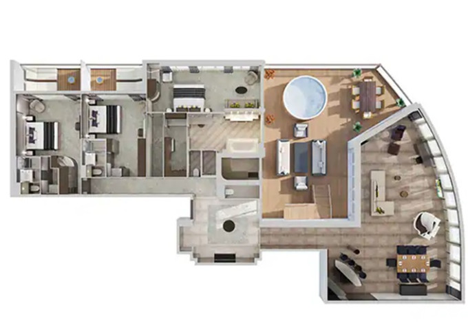 | H1 - The Haven Garden Villa - 3 spálne 454 m² / balkón 215 m². Vírivka. 14. paluba - stred. Max 8 osôb. Výhody The Haven. | 35 254 € 17 627 € za osobu |
