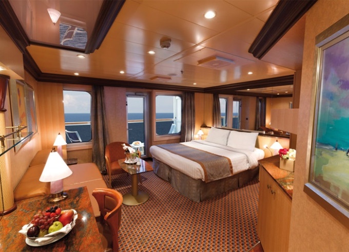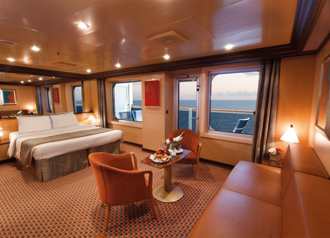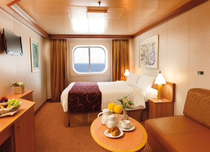- Ubytovanie v kajute vybranej kategórie. Základné vybavenie: kúpeľňa s WC a sprchovacím kútom, 2 lôžka spojiteľné do manželskej postele, skrine, nočné stolíky, toaletný stolík a stolička, nastaviteľná klimatizácia, interaktívna satelitná TV s plochou obrazovkou, trezor, sušič na vlasy, uteráky a posteľné prádlo, Wi-Fi pripojenie (za poplatok), 24/7 kajutová služba (za poplatok).
