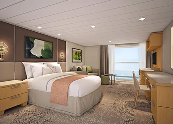 PD - Deluxe Panoramic Ocean View Suite 34 m². 12. paluba vpredu. Max 3 osoby. Výhody Suite The Retreat. 10 160 € 2 540 € za osobu