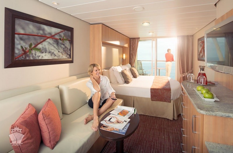 - Kajuty sú umiestnené v blízkosti lodného Spa. K ich vybaveniu patrí posilnený systém vzdušnej filtrácie, posteľ Queen-Size (v kategóriách Edge King-Size), veľké zasúvacie sklenené dvere, exkluzívne posteľné prádlo eXhale®, veľkorysé skladovacie priestory.