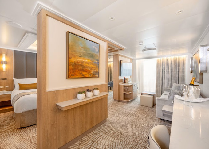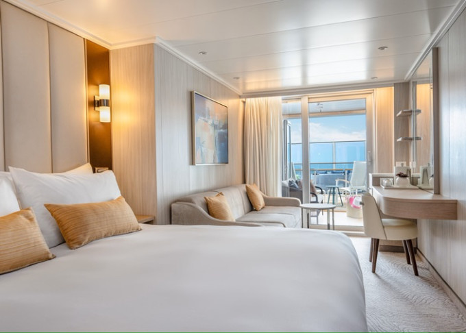 | S2 - Signature Owner Suite 59 m² (vrátane balkonu). 10. paluba v strede, 16. paluba na korme. Max 4 osoby. Šatník, kúpeľňa s vaňou, oddelené WC, kávovar Nespresso. Výhody Signature Collection. | 9 288 € 4 644 € za osobu | ||